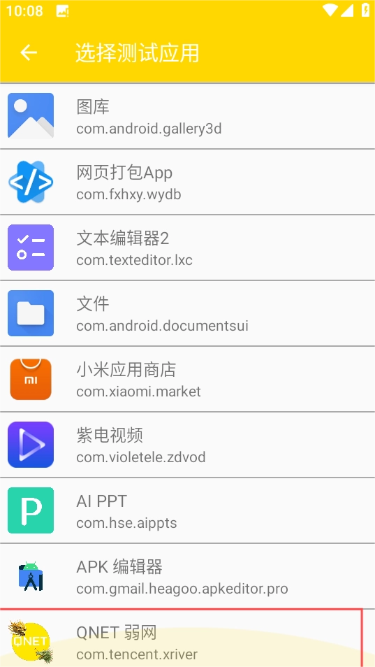 2、然后选择你需要测试的应用。