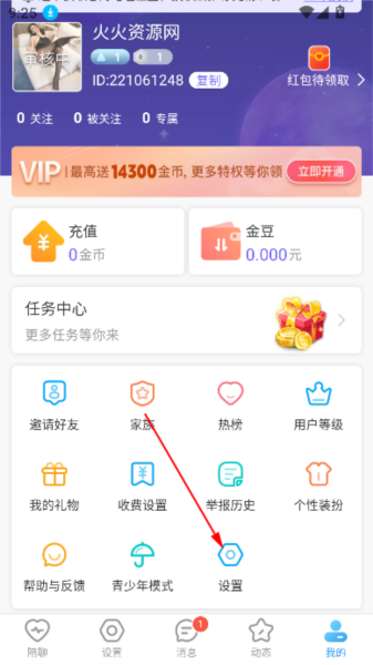 1、打开应用后,点击右下角的“我的”,接着在个人中心里找到并点击“设置”选项。