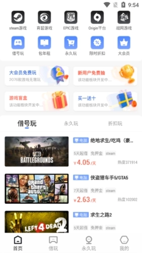 【租号品类丰富】全球热门游戏一应俱全,王者、火影、和平、吃鸡等热门游戏租号畅玩不停。