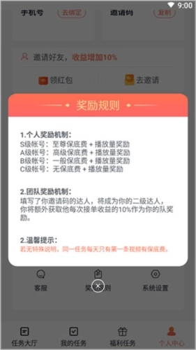 4、在奖励机制内可以查看个人、团队的奖励规则;