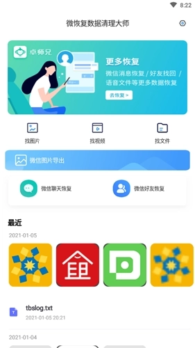 微恢复数据清理大师是苏州硅豆网络技术有限公司推出的手机清理优化专用软件,它能帮用户省去大量查找数据的时间,还可解决用户因数据过多无法导出的难题。针对微信这一高频使用平台,该软件提供专属图片导出功能,不仅能将微信里的各类图片导出至手机,还支持一键清理删除,有效提升手机文件管理效率,便于用户及时打理这些资料内容。