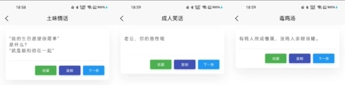 超强语录是一款有趣又好玩的语录生成器软件,里面能生成不少“骚话”,特别适合想在朋友圈出彩的朋友使用。软件涵盖了二十多种不同风格的经典语录类型,比如舔狗日记、土味情话、精神语录、成人笑话、网易云热评、奇葩对话、毒鸡汤、朋友圈文案、骂人宝典、动漫语录等等。要是在网上和别人争执时落了下风,打开“骂人宝典”,它就能帮我们组织一套不带脏字的反击话术。