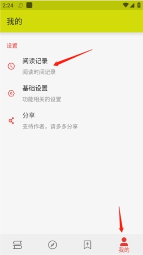 1、在本站安装喵喵小说应用,打开后进入“我的”页面,接着点击“阅读记录”选项。