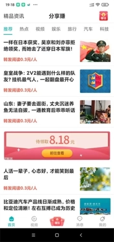 3.视讯看点这款转发文章赚钱的软件,在界面设计上和以往的转发平台有不小的差异,对新平台感兴趣的朋友可别错过它。