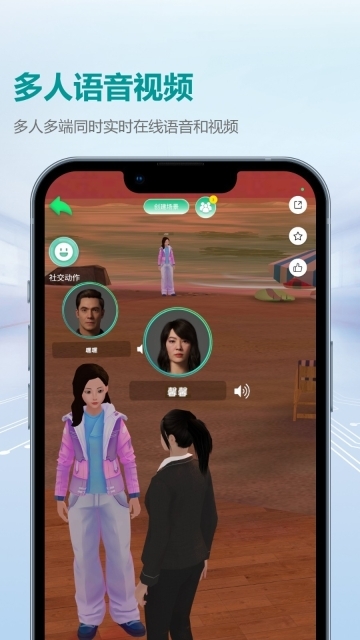 场景共享:上传自己的场景,即可成为具有视频语音功能,且能多端访问的元宇宙空间。