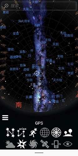 手机探测功能开启后,若对手机进行上下左右方向的移动操作,系统将自动呈现当前方位对应的模拟星空画面。