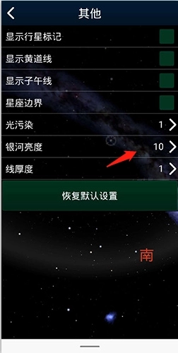 4、点击“银河亮度”选项,把亮度调整至最大值,即数值10。