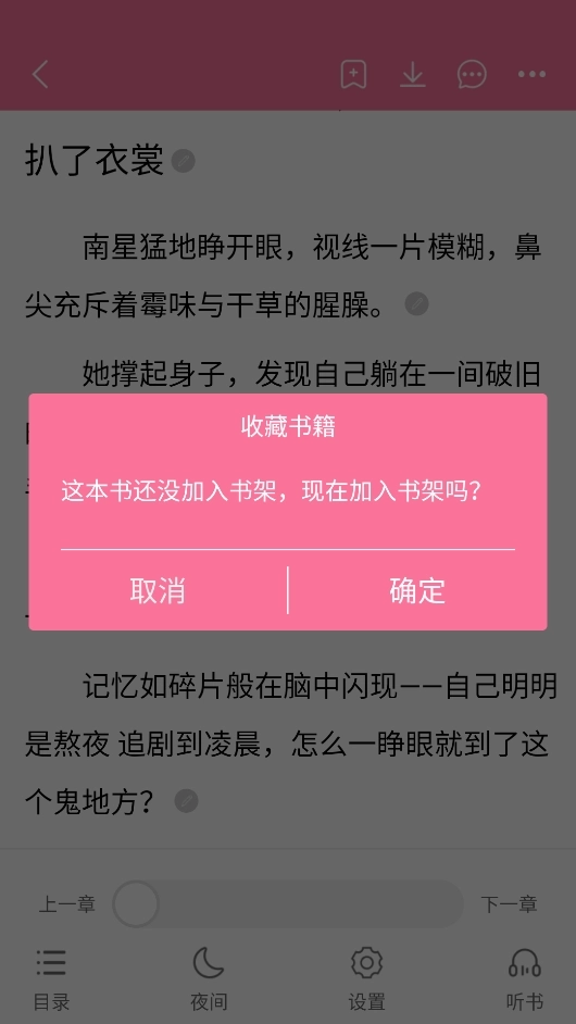 4、当退出阅读界面时,若尚未收藏该书,系统会弹出提示询问是否加入书架,确认后即可完成添加。