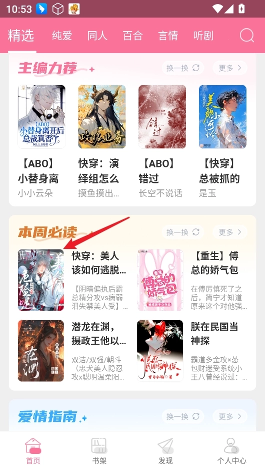 1、首先从正规渠道并安装书耽小说应用,打开后进入主界面。