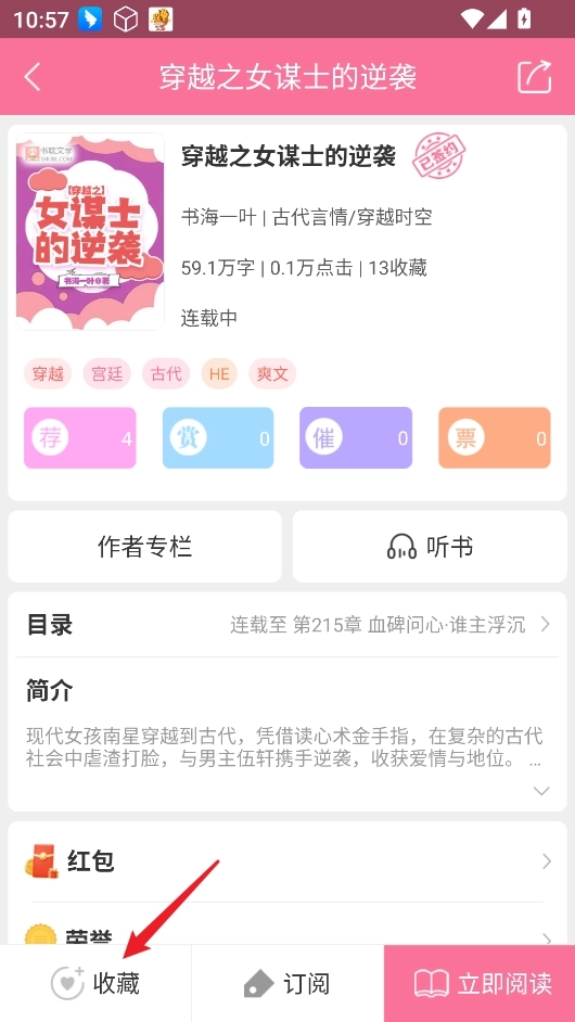 2、在小说详情页,点击左下角的“收藏”图标即可将其添加至个人书架。