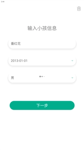 1、在本站安装麦苗助手孩子端后,打开该应用会提示输入小孩的相关信息。