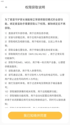 3、弹出权限获取说明后点击我已知晓并同意。
