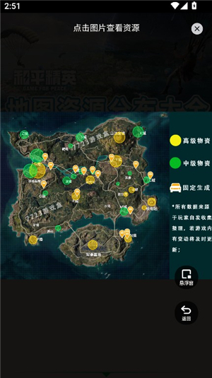 和平精英地图资源工具是一款专为吃鸡游戏爱好者打造的大地图指南软件,能生成悬浮窗与游戏同步运行。不管你在哪个地图,都可以通过点击软件查询相关资源,它会为你标记高级物资刷新点,助力你快速获取三级甲、三级头和各类强力武器。感兴趣的小伙伴,快来体验和平精英地图资源工具吧!