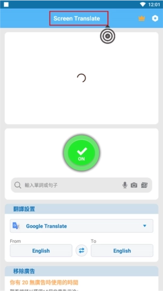 1、启动ScreenTranslate屏幕翻译器后,第一步请点击红色的OFF键;