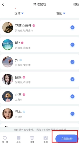 2、输入我们想要关注的账户类型,就能消耗金币去关注他人啦!