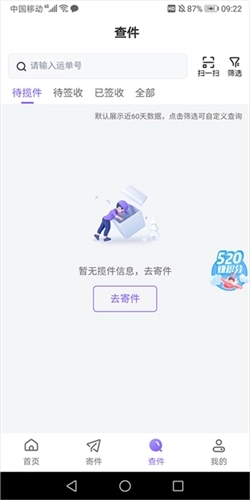 3、还能点击底部导航栏里的【查件】选项,进入查件页面完成查询操作