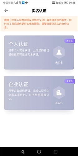 个人用户可点击【个人认证】,企业用户则可点击【企业认证】