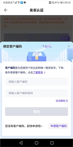 这里以个人认证方式为例,此时会要求用户申请客户编码,用户点击申请即可