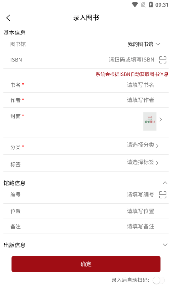 3.智能识别功能:系统可自动识别绝大多数图书信息,有效提升图书录入的效率。