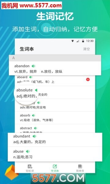 1、词汇学习与文章阅读(或聆听)都能锻炼用户的听力能力。通过持续练习,他们不仅能取得明显进步,还能快速积累英语知识。