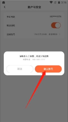 4、点击“确认拨号”,与人工客服取得联系并沟通后,即可顺利完成账号注销操作。