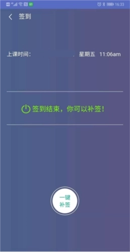 3、签到结束后,点击“签到”按钮可实现“一键补签”,补签结果将显示为“迟到”。