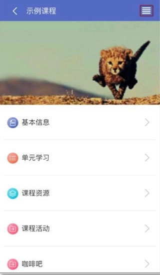点击课程主页右上方的“菜单”按钮,即可弹出活动列表菜单,具体样式如下所示:
