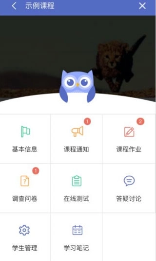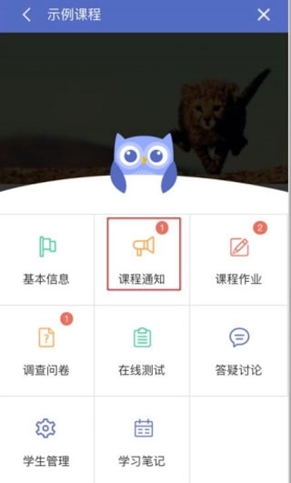 “课程通知”板块主要用于展示该课程所发布的全部通知内容。若需查看,可点击课程主页右上方的“菜单”按钮。