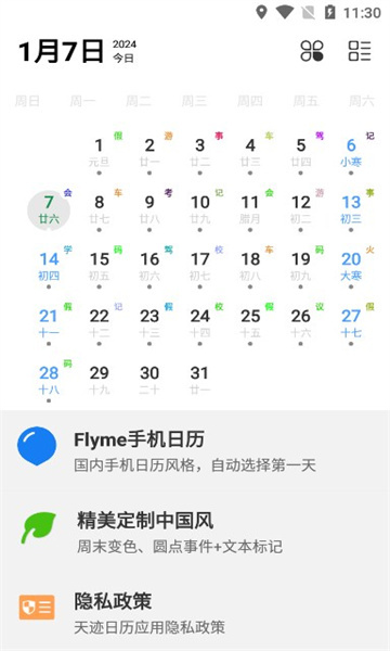 为用户带来天迹日历手机版,这款日历软件页面十分精美,占用内存极小,支持多种日历样式自由切换,自带农历和节假日信息,还提供备忘录、日程提醒等实用功能。