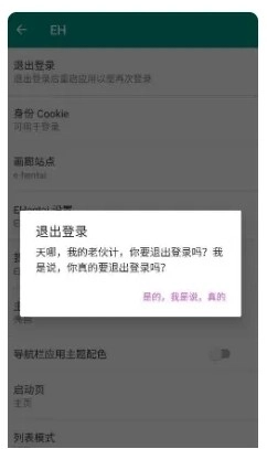 7、然后点击退出登陆,再打开软件,输入网址exhentai.org就可以进入了。