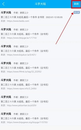 在显示的书源中选择一个切换即可,点击右上角的【刷新】还可以查看有没有其他新书源。