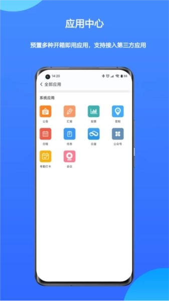 工作伙伴、常用系统与物联设备等被紧密相连,构建成统一的工作入口,用户因此能在单一平台上处理各类工作任务,显著提升了工作效率。应用中心预先配置了多款实用应用,同时支持第三方应用接入,让工作场景更为丰富多元。智能通讯录具备树形组织架构,方便用户借助组织结构快速定位所需联系人。消息中心可支持多种消息类型,并能追踪消息的已读未读状态,助力用户更好地管理沟通信息。