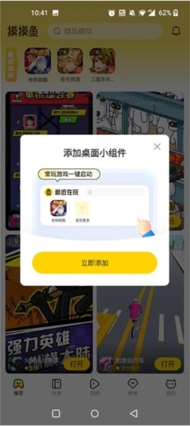 4、添加桌面小组件:应用会推荐添加桌面小组件,用于在桌面显示游戏相关内容。请选择“立即添加到桌面”选项进行操作。