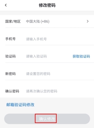 4、可以直接修改密码,也可以通过邮箱验证码来修改,点击“确认修改”即可完成操作。