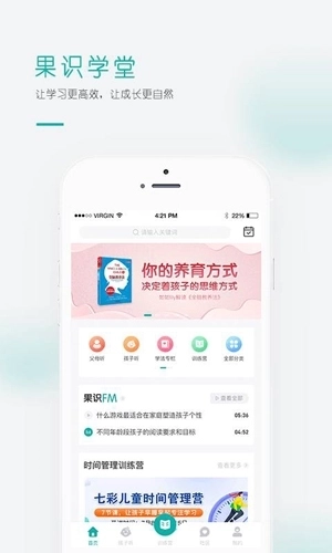果识学堂的课程包含精选书籍解读、音视频课程、训练营、直播课程等优质资源,为用户提供以家庭教育为核心的一整套线上线下服务。