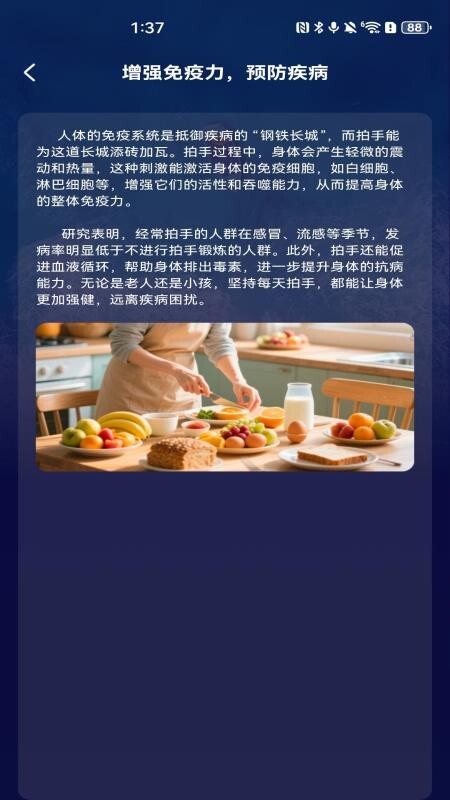 3. 给出多样的健康小建议,助力用户知晓拍手给身体带来的好处,像拍手能够推动血液循环、减轻压力之类。