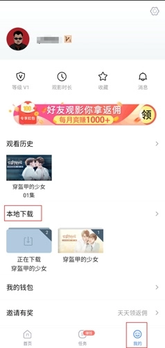 1、用户在我的页面中,找到本地中要删除的视频;