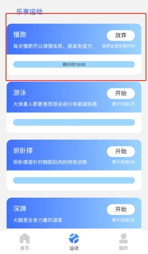 5、挑选一项运动后点击“正式开始”,就能看到该运动所需的时长(像慢跑这类运动,还能查看自己坚持的时间等),这也类似于打卡功能。