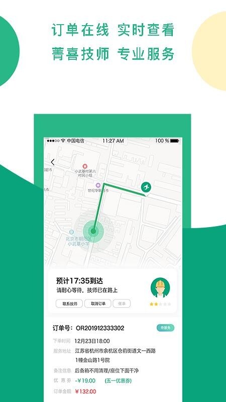 完成订单信息后一键提交订单,即可查看订单的服务进度。