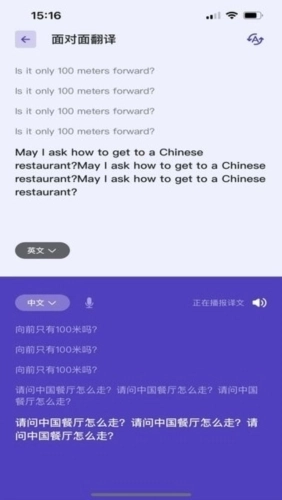 面对面交流时,你说一句,我译一句,实时语音播报,让线下沟通毫无障碍。
