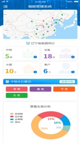 ◆数据统计:各项关键数据的统计信息清晰直观,助您全面掌握农户分布、设备分布、销售增长及作物生长的整体概况。