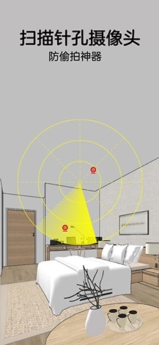针孔摄像头探测器手机版是一款专门用于反偷拍的应用软件。如今社会科技发展迅速,一些不法分子借助先进技术实施非法行为,比如在酒店等场所安装隐藏摄像头进行偷拍的情况屡见不鲜,让人难以防备。这款手机应用能通过一键扫描,检测房间内是否存在隐藏摄像头,为用户提供了保护隐私安全的实用工具。当用户入住酒店、租赁新房或使用更衣室等私密空间时,可借助该应用排查潜在的安全风险,保障个人隐私不被侵犯,有效防范不法行为。有需要的用户不妨尽快体验!