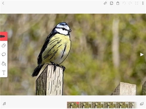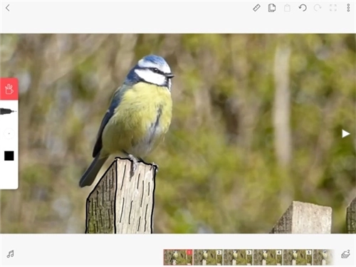 全部绘制完成后,点击预览按钮,就能看到小鸟动起来的效果;要是需要调整修改,可以长按下方的帧缩略图,这样就能进行删除或复制帧等操作了。