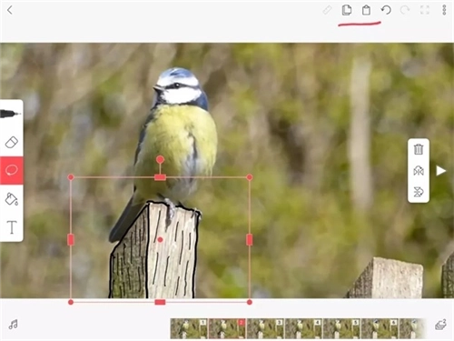 点击右侧的图层图标,即可看到图层列表,其中包含视频对应的图层。我们可以将视频上方的空白图层命名为“树”,接着新建一个图层并命名为“鸟”,通过拖动图层能够调整它们的上下顺序。