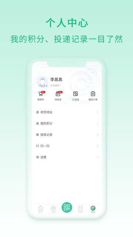 当你把各类不同的垃圾投放到指定地点时,还能得到商城的积分。