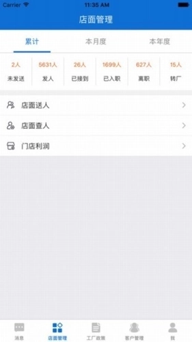 1、可以看到从门店发往工厂的每批员工是详细信息;