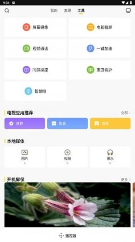 用户点击上方工具,就能使用屏幕镜像、电视截屏、视频通话等多种电视工具。