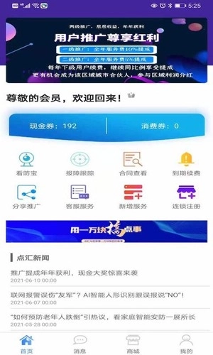 e点汇是湖南电汇网络科技有限公司开发的监控查看软件,专为广大用户提供智能安全服务,助力大家体验多样化的安防整合服务,软件内还有不少实用功能可供使用!在e点汇监控中,包含智能部署与移除、检查反宝、查看合同、安全跟踪、过期续订、共享推广等一系列功能,通过这款软件,您能快速了解安全状态,有需要的朋友可别错过啦!