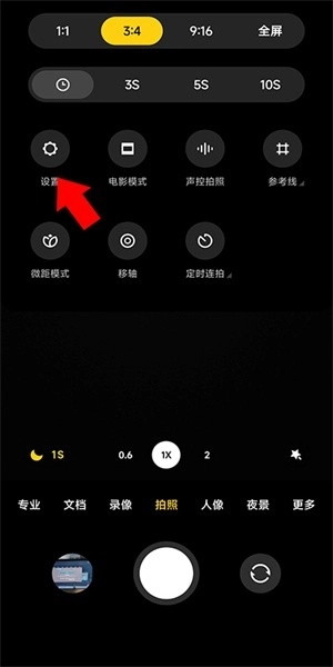 3、然后打开手机自带的相机,点击右上角菜单按钮