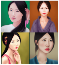 综合起来是这样:(portrait of a beautiful woman from china)symmetrical face, warm smile,Realisticart, highly detailed, Photojournalism, .Camcorder Effect后面加粗的部分,是新加上去的。我们来看看效果: